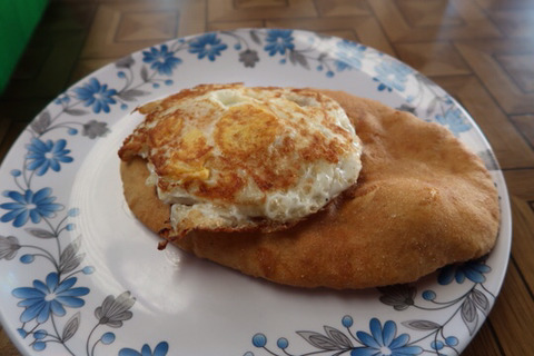 구룽빵에 계란후라이올려서 딸기잼+케찹발라먹기
