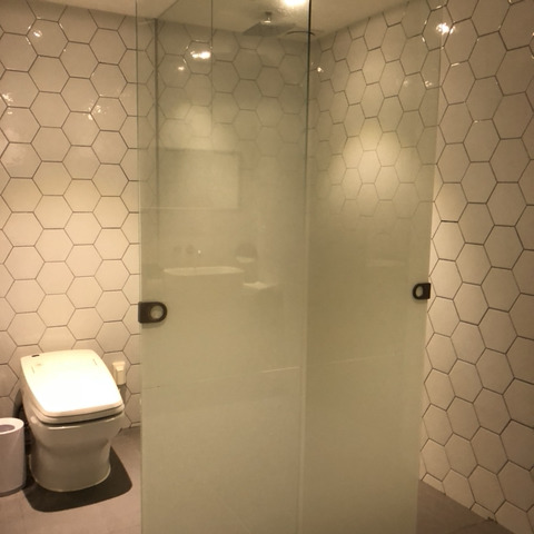 왼쪽은 화장실, 오른쪽은 샤워실인데 문이 저렇게 가운데에 있어서 화장실쪽으로 당기면 샤워실이 뙇! 샤워실쪽으로 당기면 화장실 뙇! 이게 첨엔 좀 그랬는데,, 괜찮았엉!!