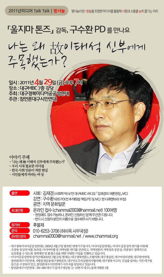 이번에 울지마 톤즈 감독님이 강의를 하신다고 함!!