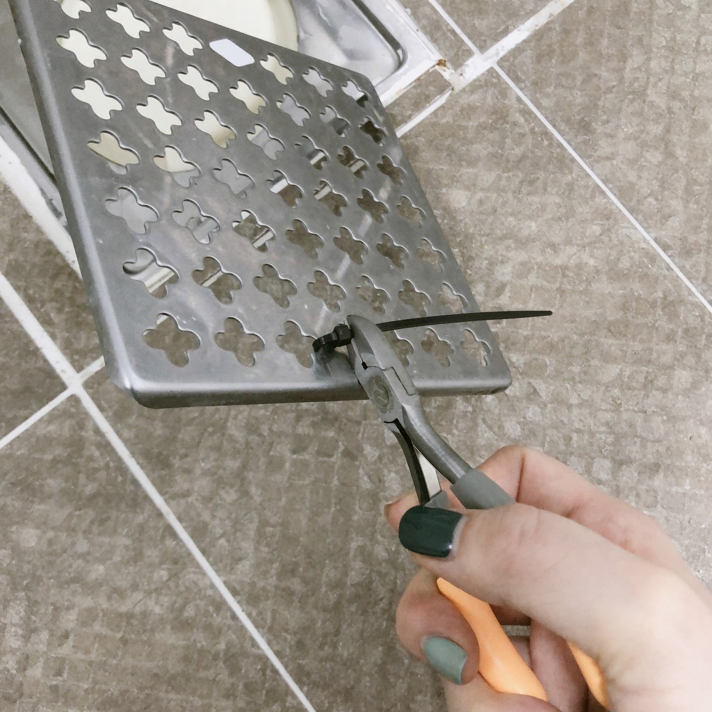 ...화장실 배수구에 케이블타이로 손잡이 만드는 과정...