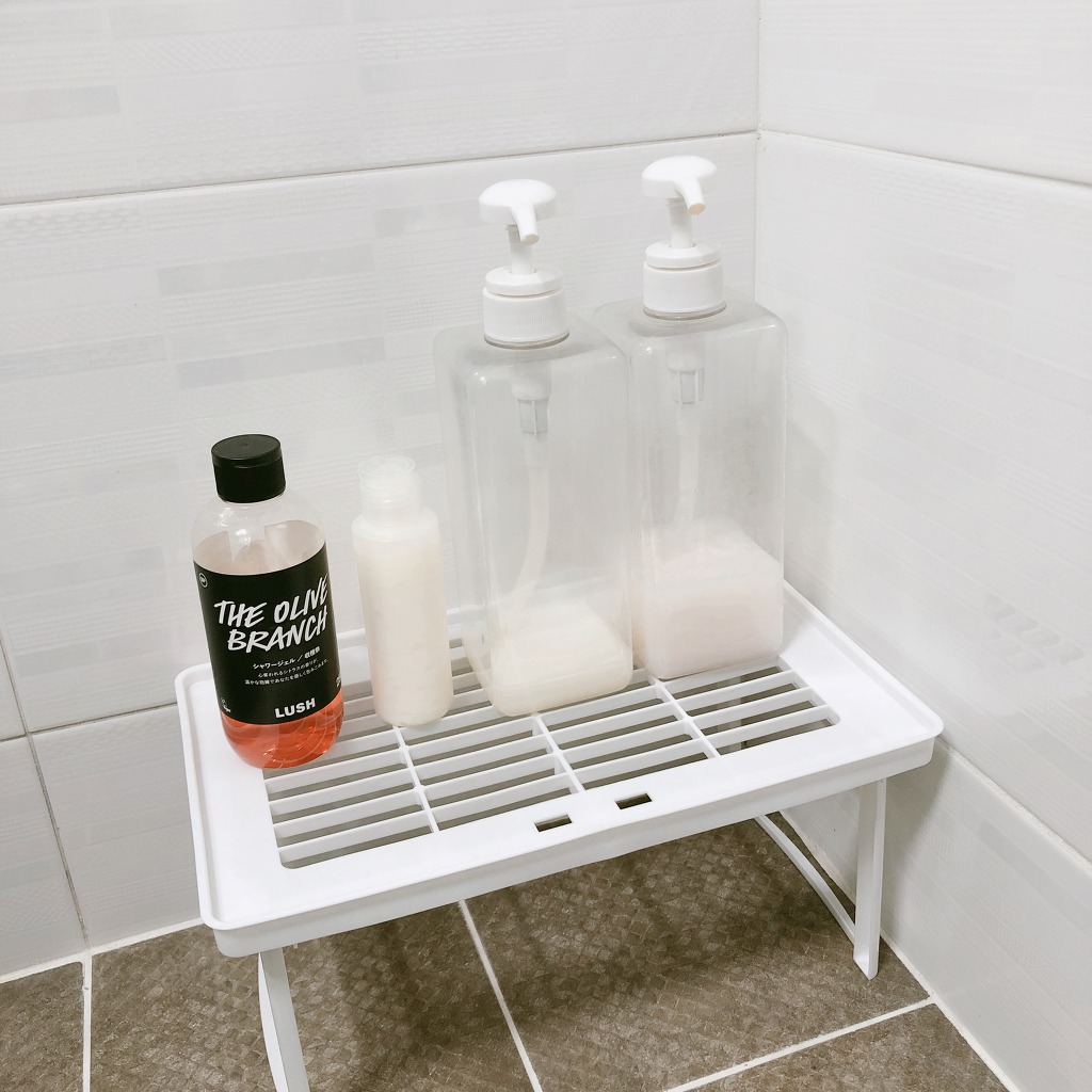 뭘 놓기에도 사이즈가 안나와서 처음엔 샴푸랑 바디워시 바닥에 놓고 썼는데