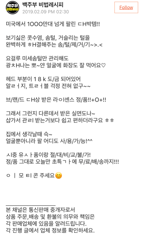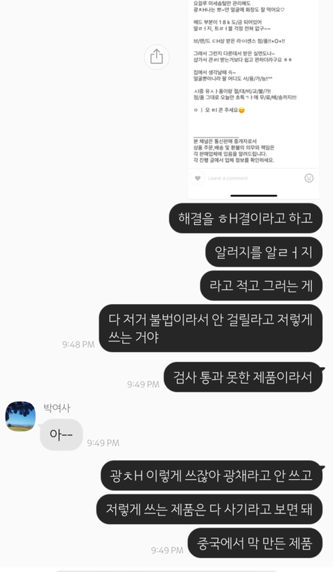 심지어 이 채널은 본인들은 판매 중개업체라서 제품에 관해 책임이 없다는데도 중개업체 정보는 귀여니체로 적어놨지. 검색해도 안 뜨게 하려고 일부러 저렇게 쓴거야. 댓글 단 사람들이 구매를 원하면 자기들 전용 링크를 줘서 구매를 하고 그게 판매업체에 전달이 되면 커미션을 받는 거지.
