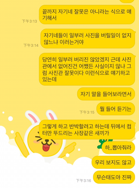 결과적으로 사과 한마디도 없었고;;;;;;;; 사진은 공중분해 됐는데.. 돈 이미 받았으니까 책임없다는거잖아 완전히