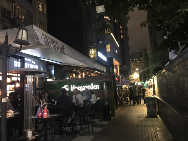 와. 음. 100m 될까? 한 골목에 몇개의 바들이 쫙 있고,