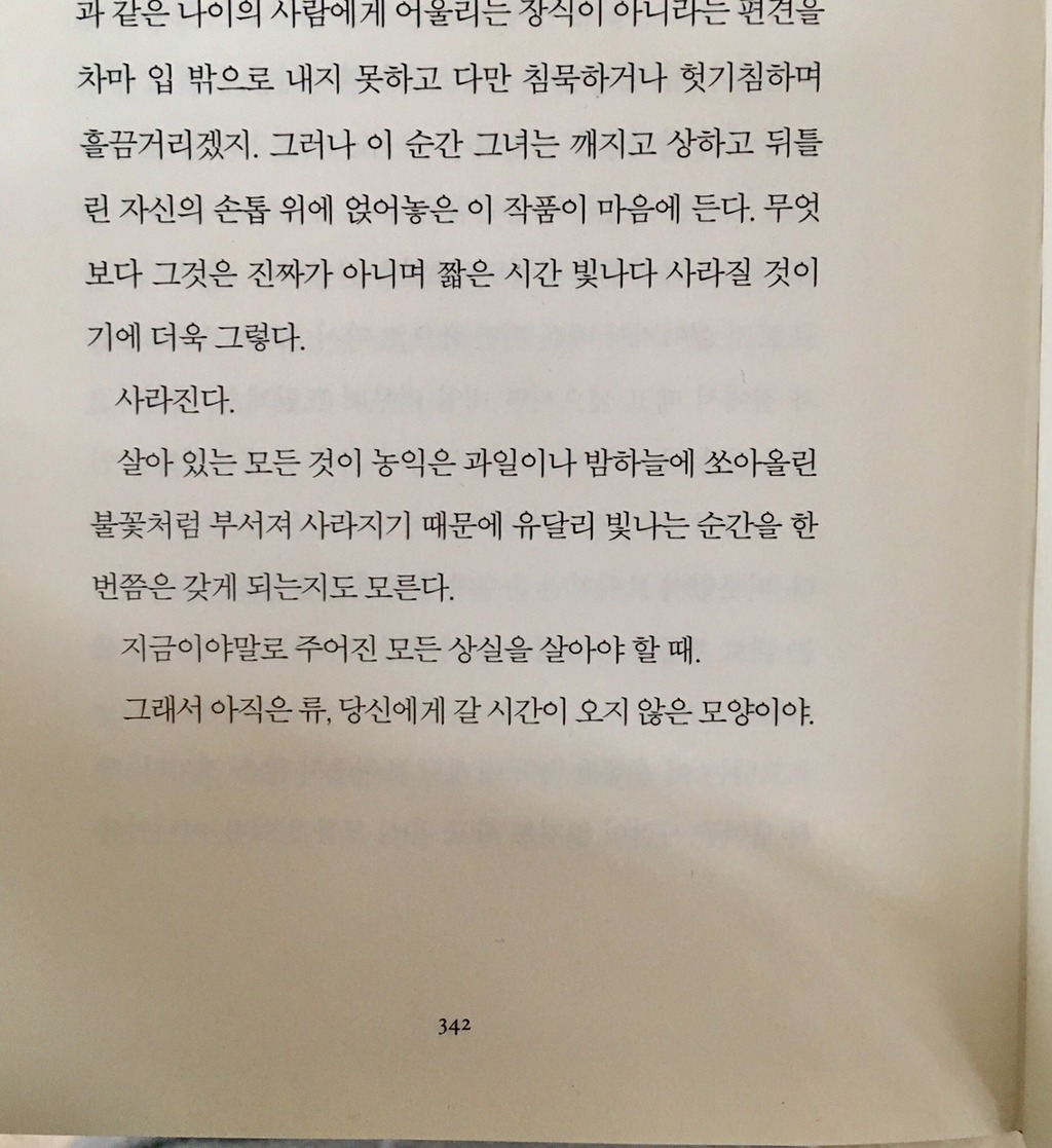 살아 있는 모든 것이 농익은 과일이나 밤하늘에 쏘아올린 불꽃처럼 부서져 사라지기 때문에 유달리 빛나는 순간을 한 번쯤은 갖게 되는지도 모른다.
