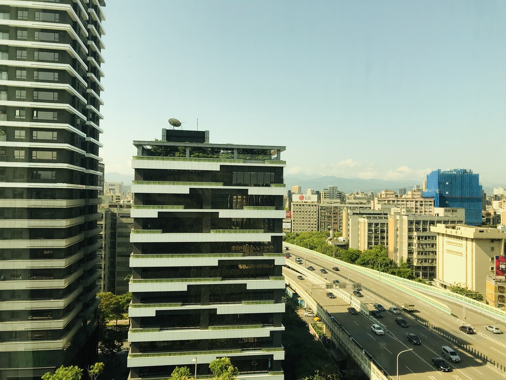 엄마가 우산 갖고 있어서 우산쓰고 타이페이 빌딩 사진 찍었오
