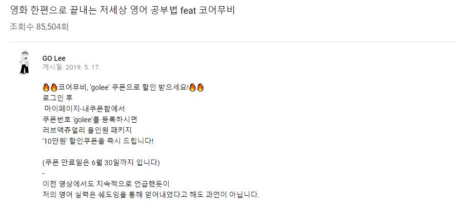 거기서 고리님이 영어 인강 추천한 영상 보고 나도 결제 했다고 언급했는데