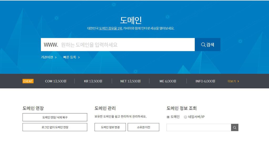도메인을 파는 사이트 중 우리나라에서 가장 많이 쓰는(그리고 내가 조사한) 곳들을 소개하면