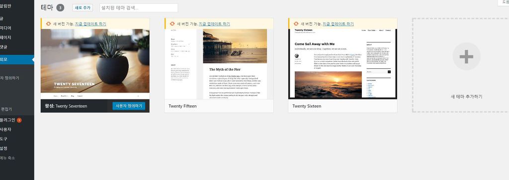내가 가진 테마 중에서 활성화 시키면 그 테마가 적용되고