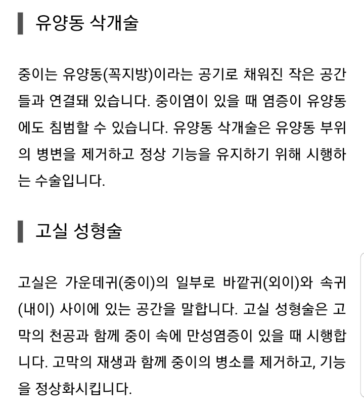 내가 받은 수술은 유양동삭개술+고실성형술인데