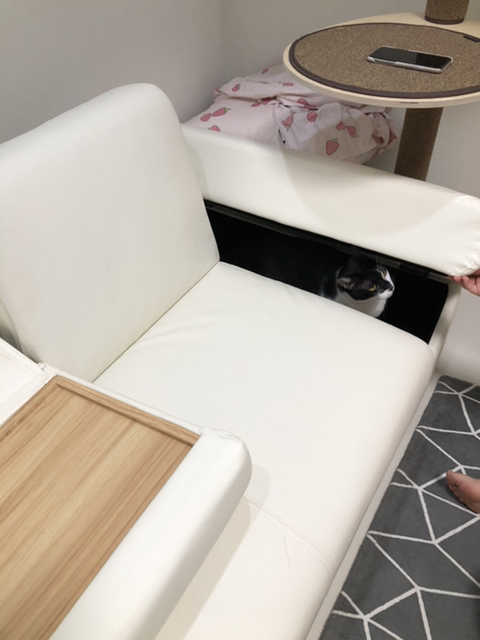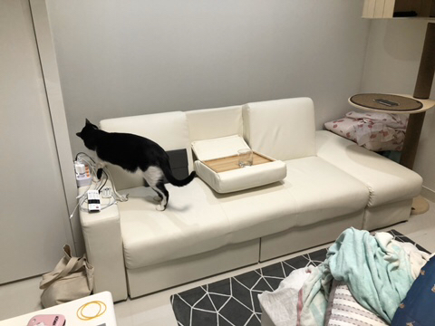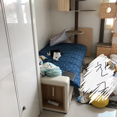 이건 소파베드 뒤에 남는 공간이자 고양이 숨숨집