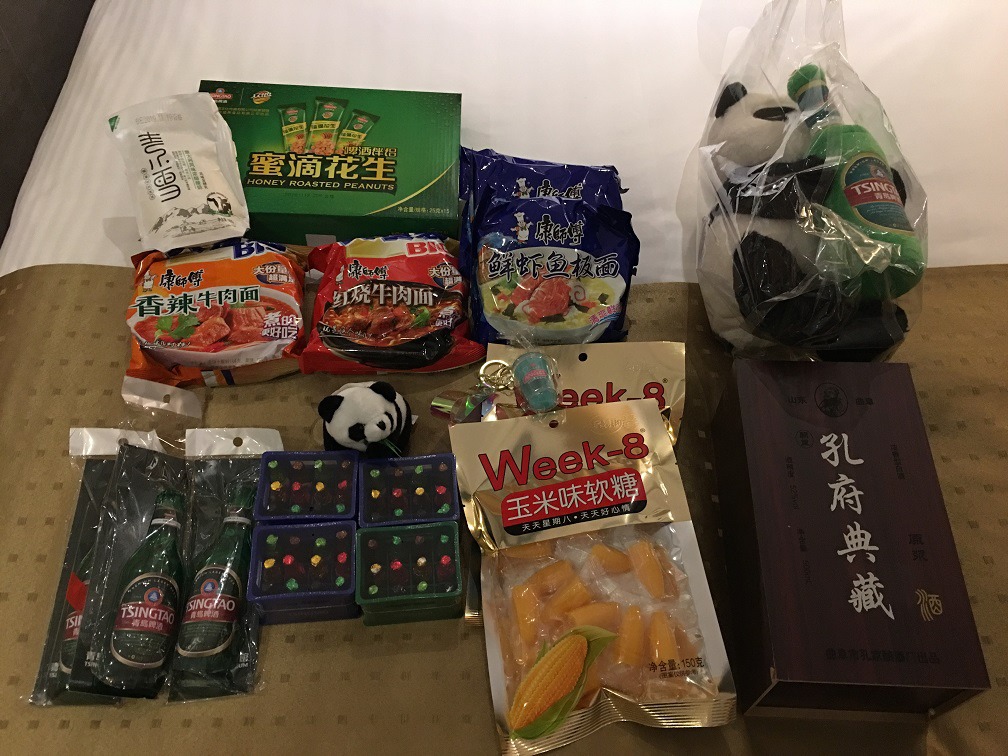 맥주박물관에서 맥주병모양 초콜릿, 칭다오 병따개, 꿀땅콩(한 상자入 열 다섯 봉지), 팬더 인형(팬칭이라고 이름 붙였음 ^^♥)