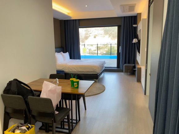 단점 : 개방적인 창문들ㅎㅎ 복도로 나있는 창, 침대 옆 창, 샤워실창.. 여름에 이용할 땐 왔다갔다하거나 내다보기 좋지만 그만큼 밖에서도 우릴 보기 쉬움 커튼 치고지냈어