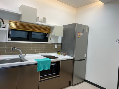 있는 것 : 전자렌지, 소주잔, 와인잔, 기타 식기들, 조리기구들, 전기밥솥, 드라이기, 치약, 비누, 샴푸, 린스, 바디워시, 바디워시타올,와이파이