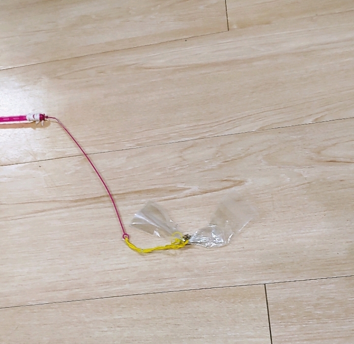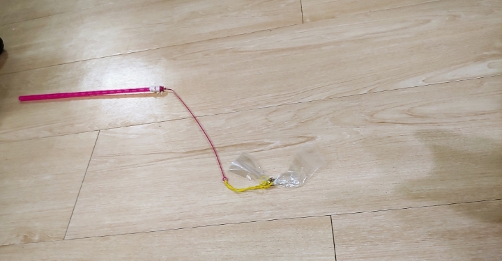 사냥감 부분은 날라가고 막대만 남은 장난감에 아래와 같이 묶어서 만들어 주면 완성~~~~
