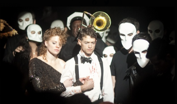 여기서 저 흰 가면 쓴 사람들이 관객이야 공연 중에 관객은 저 가면을 쓰고 있어야 해