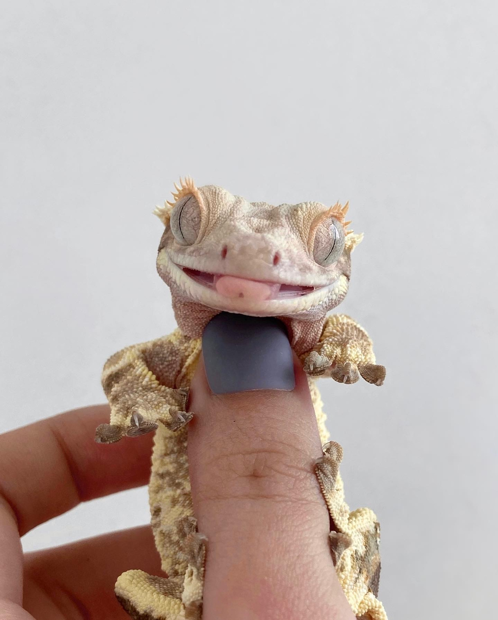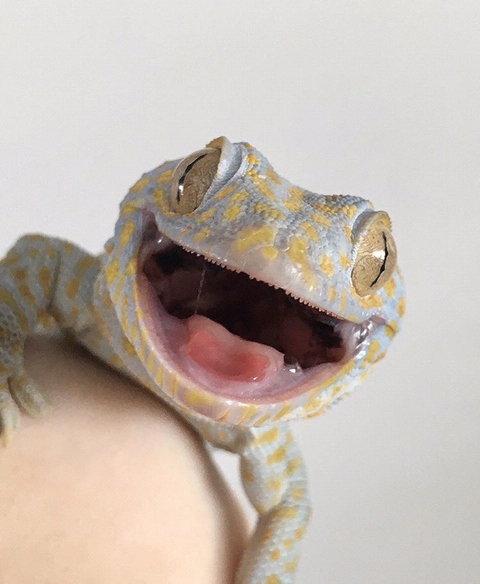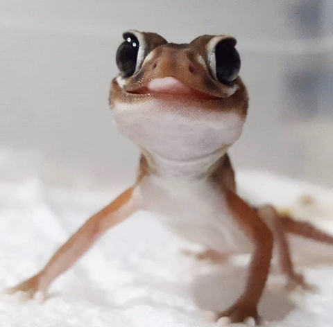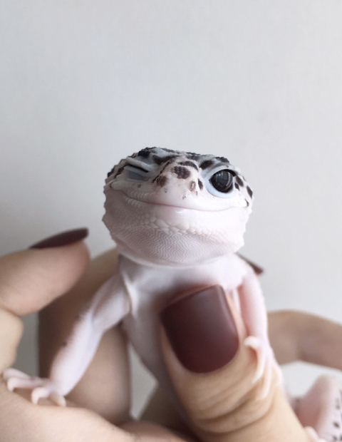 게코들은 다 커도 손바닥 하나에 다 들어오는 경우가 많아서 사육공간도 부담 덜 되고 무엇보다 얼굴이 웃는 상이라 귀여워. 실제로 웃는 건 아니야(단호)