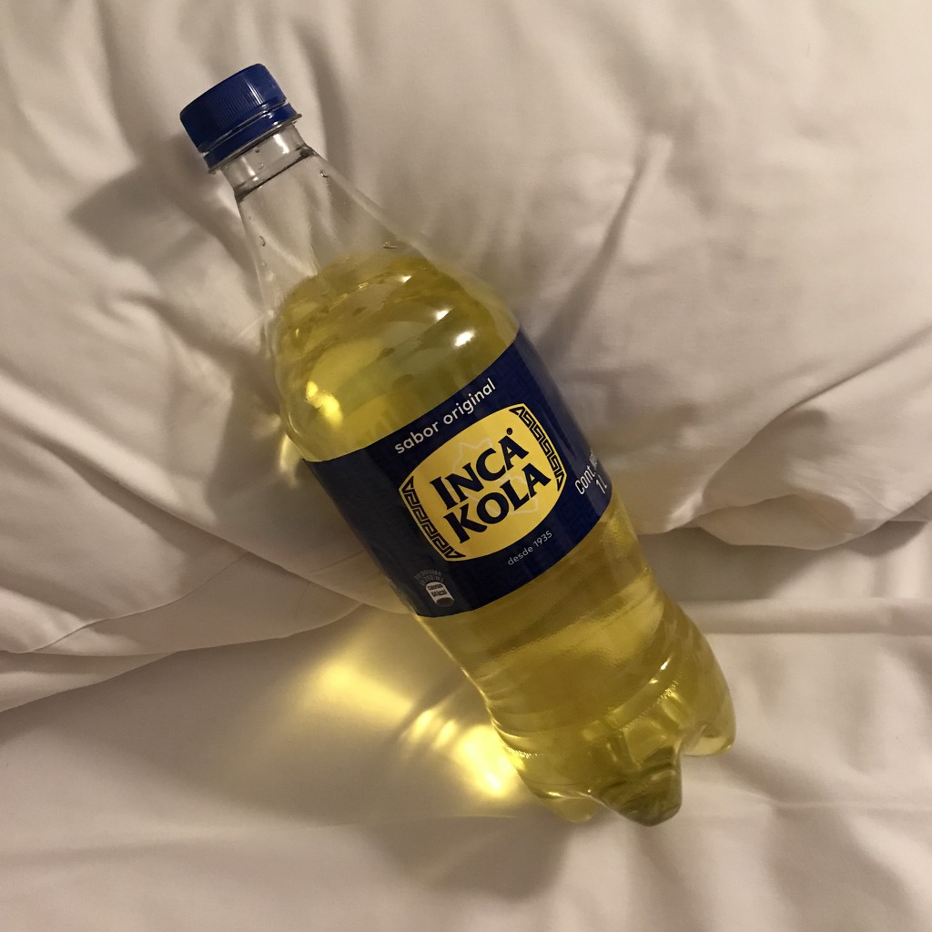 아 이거 남미에서만 판다는 잉카콜라야! 맛은 그 소다맛? 탄산이 쌔진 않고, 남미온다고 하면 한번 쯤 먹어볼만해! 일반 콜라랑 맛이 좀 달라ㅋㅋㅋㅋㅋ맛있음 낫베드