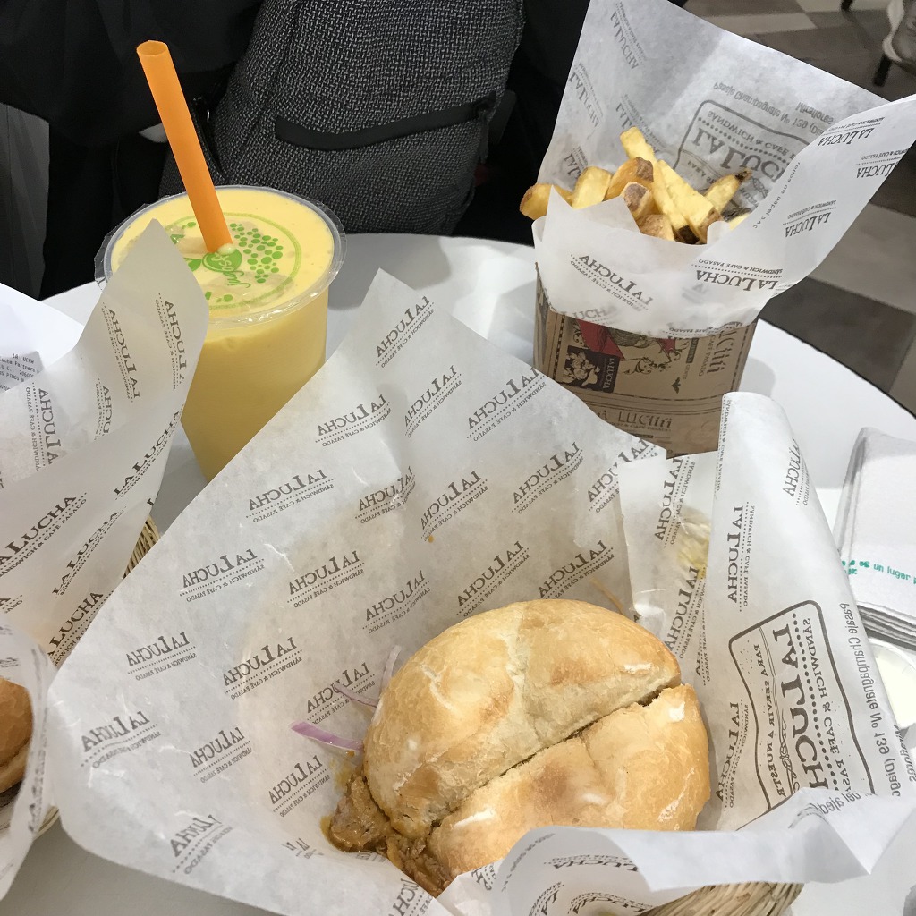 아 이거 알아 여시들? 이거 그 꽃보다 청춘 페루편에서 유희열이랑 걔네가 버스 이동하기전에 구매해서 버스안에서 맛있다고 먹었던 샌드위치 집이야! 신시가지 공원 근처에 있음ㅎㅎㅎㅎ가게 이름은 "라 루차 상구체리아" 생각보다 존맛.. 저 위 쥬스는 망고였어!