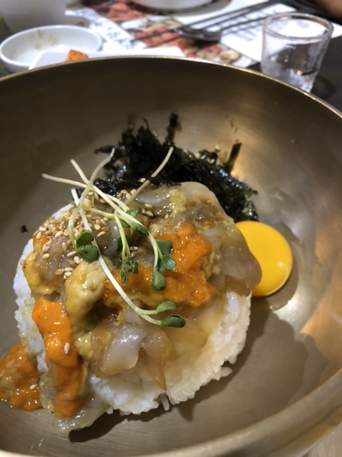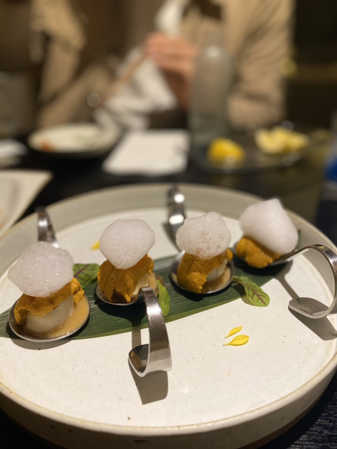 진짜 싫었던 메뉴. 관자구이+성게알인데 왜인지 냄새 구리고 비위 상하는 그런 메뉴였음ㅠㅠ 돈아까워..