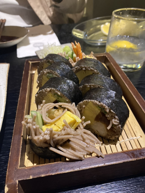조명이 이쁘고 음식도 이쁘게 잘 나옴! 메밀김밥 맛있음 ♥