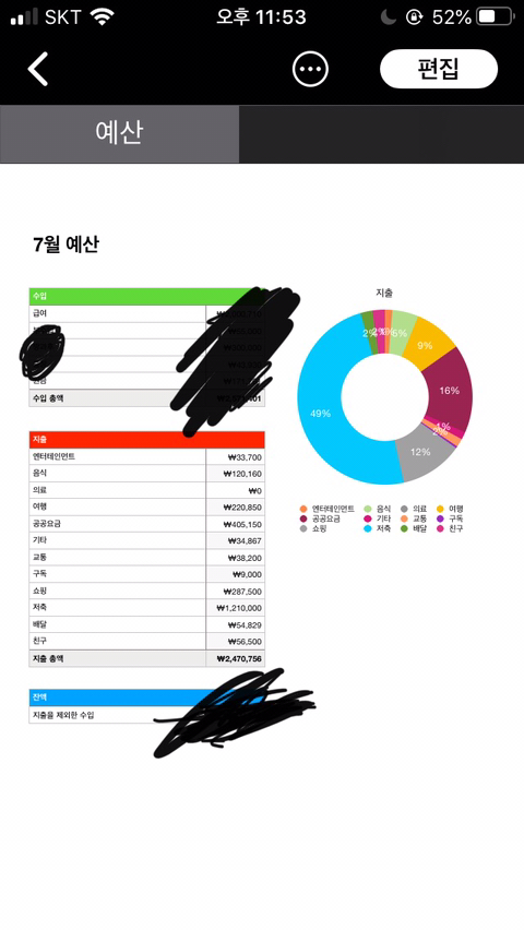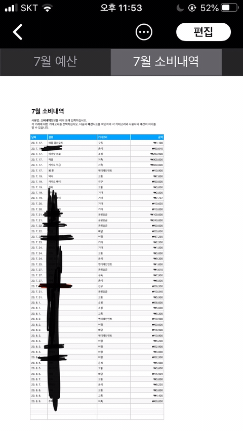 이것저것 검색하다가 이걸 우연히 알게 돼서 오늘 7월 가계부 완성한 김에 혹시 나같은 사람이 있을까 공유하고 싶어서 콧멍에 올려봅니다...