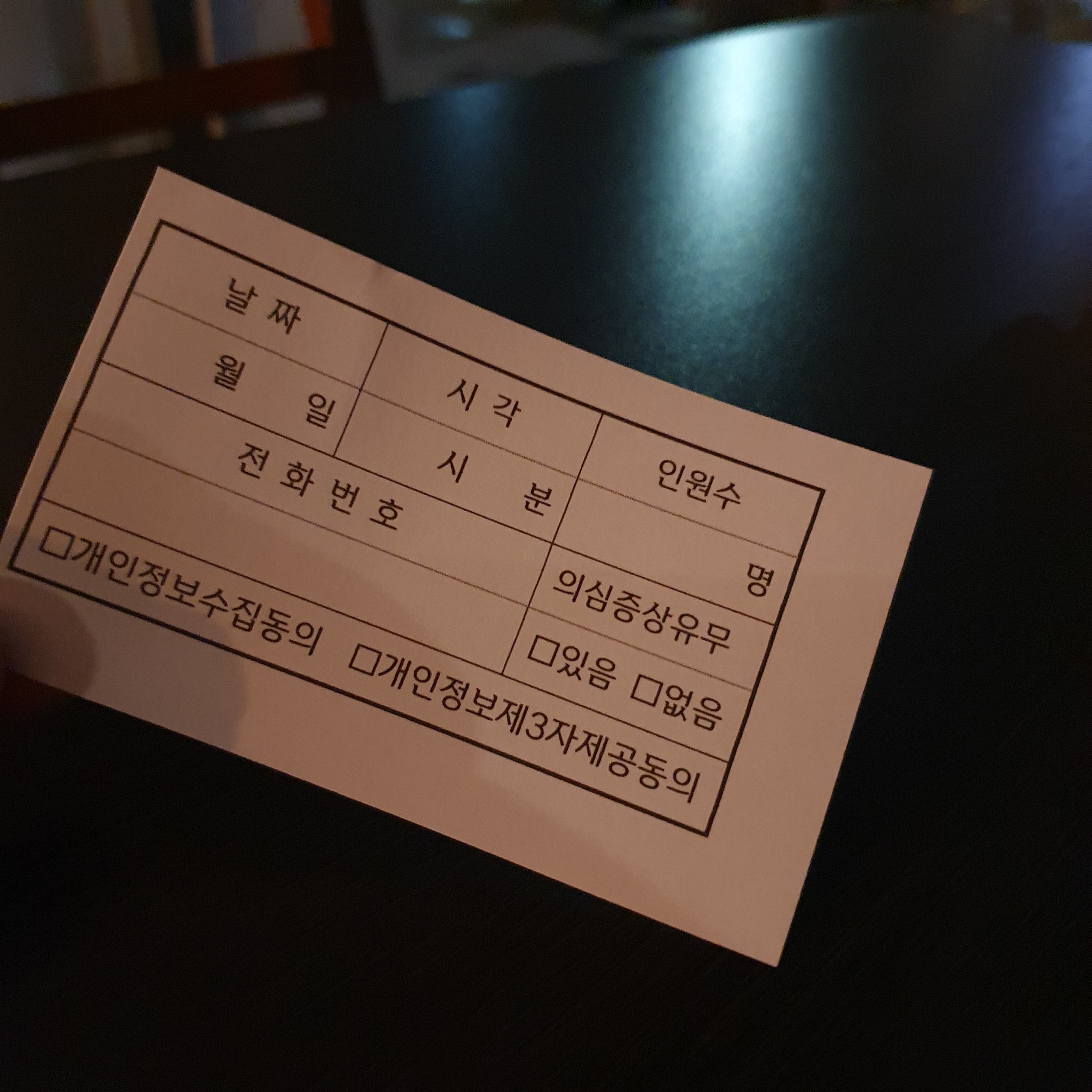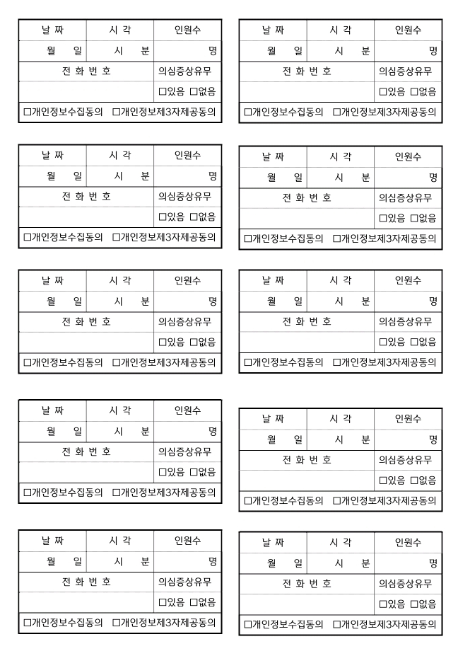 시청에서 배포한 출입명부 양식이