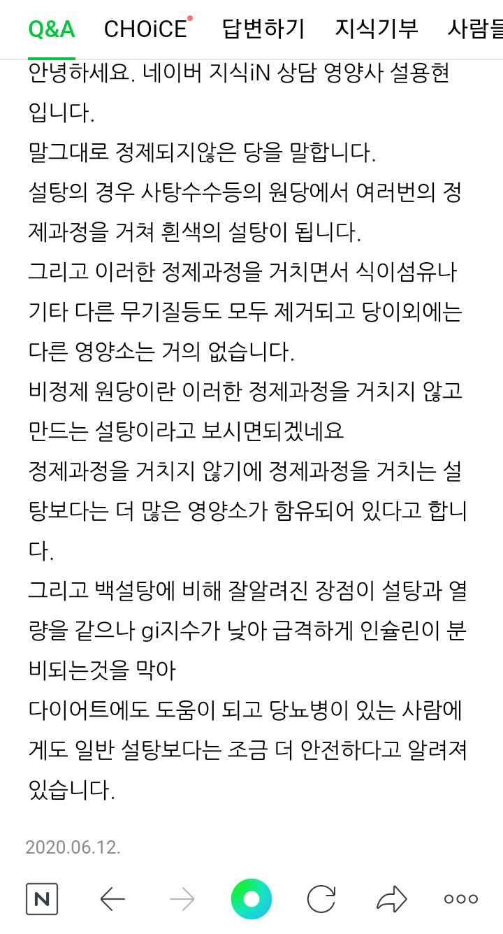 무설탕이 아닌 정제가 안된 당분!