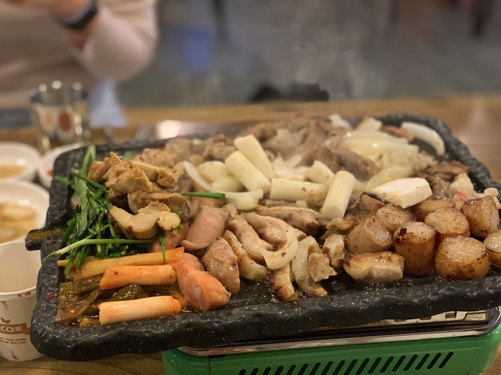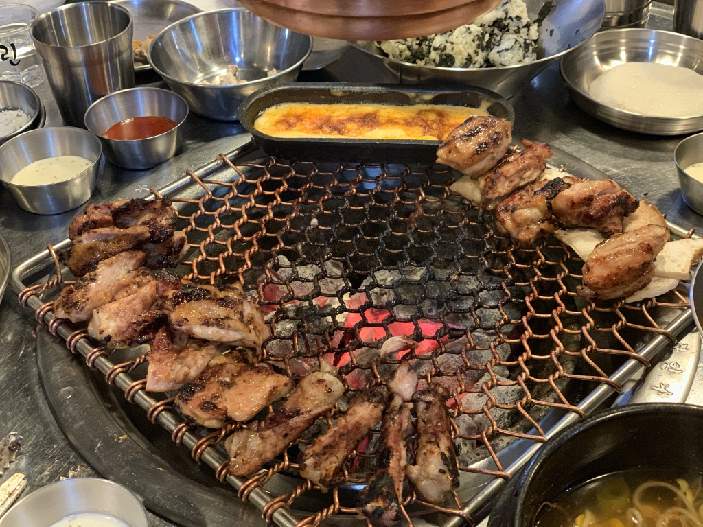 전도 맛있는데 철판에구워서 나오는 닭구이 있는데