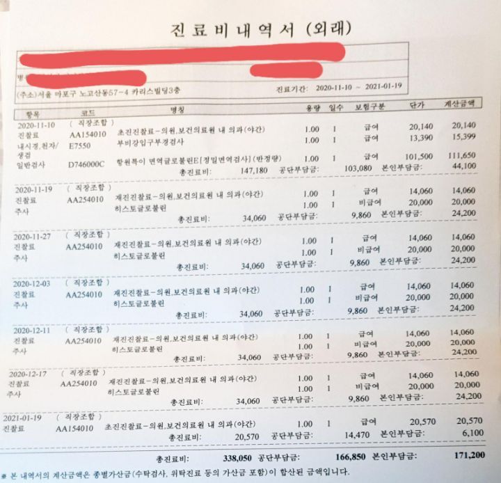 어딘지 남기면 홍보일거같아서 밑에 진료비내역서에 주소만 남길게 이것도 안되면 알려주세유 쫄보임 ㅎ
