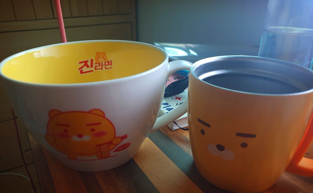 나는 컵,벽시계, 샤워기, 코스터, 이불, 베개 등등 보유중