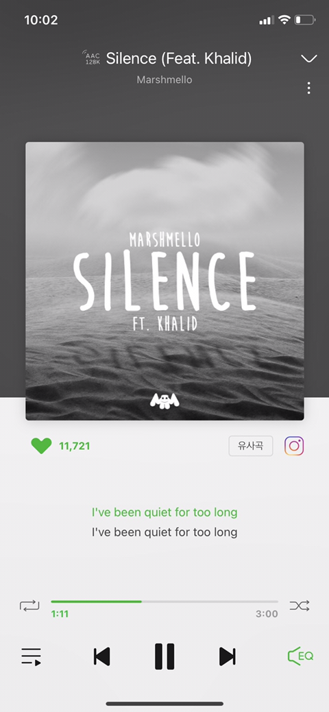 12. silence 난 칼리드도 엄청 좋아해 목소리가 쫙쫙 달라붙잖아.. 칼리드 특ㅇ유의 뭔가 악기같은? 목소리 특징이