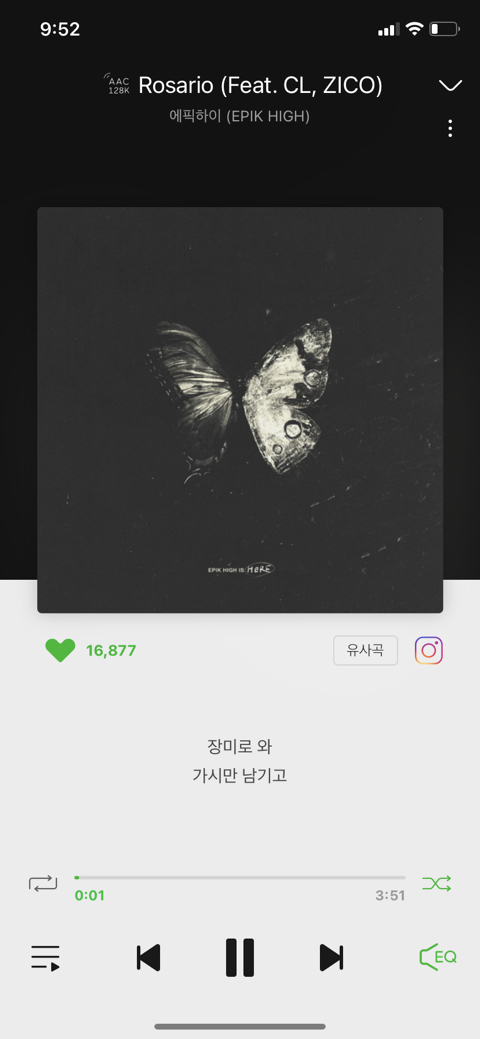 개인적으로 지코 목소리 좋아하는데 여기서 랩할때 너무 듣기 좋아서 .. 게다가 씨엘 피처링까지,,,,뭐 하나 거를타선이 없는 곡..
