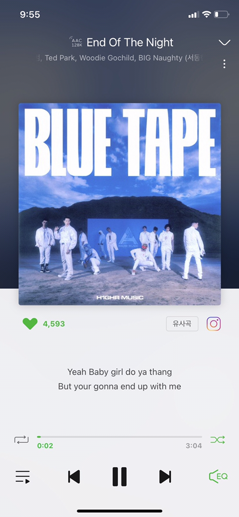 9. End of the night 하이어 뮤직 블루테잎 노래 중 한 곡.. ! 난 갠적으로 레드테잎보다 블루테잎이 더 취향이더라고%...박사장 목소리 말모 ^^ 이건 피아노음을 베이스로 해서 약간 경쾌하고 신나는 노래%...그리고 다 좋은데 이 곡 마지막 부분에 서동현 벌스가 너무 좋아서 한번들으면 꼭 끝까지 듣는 노래야