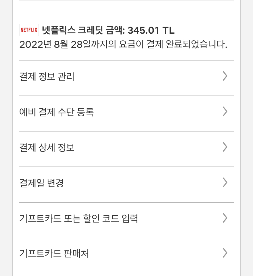 넷플릭스 기프트카드 터키 100리라 등록방법