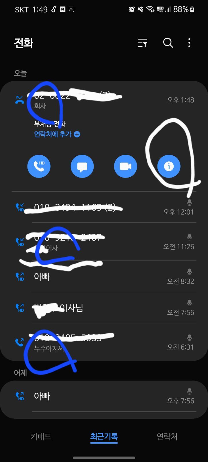 [[여시생활정보]]전화번호 저장하기는 싫은데 누군지 표시는하고싶다?(갸략시만) 작성자흘려보내|작성시간22.03.23|조회수25,644 목록 댓글 155 글자크기 작게가 글자크기 크게가 출처 : 여성시대 (단순하게즐겁게살자)요즘 집도 부동산에 내놓고 수리도 많이하고 여러사람이랑 연락 할 일이 많아 저장하기는싫은데 또 누군지 분간이 필요는하더라고그래서 그냥 무심코 번호 누르고 i표시 누르고 메모 눌러서 그 사람 정보 등록했더니 전화올때도 메모가 같이 뜨더라고 개꿀이야 갤럭시만 해당파란동그라미가 메모해놓은 내용이야 도움되길 다음검색 현재 게시글 추가 기능 열기 북마크 공유하기 신고 센터로 신고 댓글 댓글 155 댓글쓰기 답글쓰기 댓글 리스트 작성자아맞다밀크 | 작성시간 22.03.25 대박고마옹!! 작성자출근싫어.. | 작성시간 22.03.25 아 시발 아이폰형!!!!!! 작성자바버 | 작성시간 22.03.25 와 개꿀 고마워!!!! 작성자최우수테러무기 | 작성시간 22.12.07 여샤 진짜고마워.. 저장좆같아서 검색햇더니 광명찾음 ㅠㅠ 작성자뮤무이잇 | 작성시간 23.08.08 고마워ㅠㅠㅠ 댓글 전체보기
