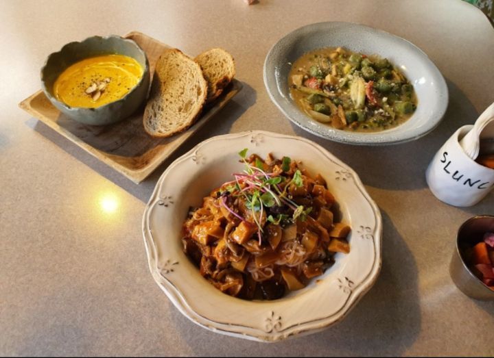 들깨칼국수, 버섯탕수육, 비건김치 등