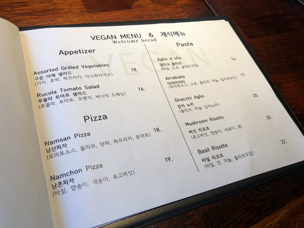 비건음식 코스요리로 먹을수 있는곳. 가격대 꽤 있음.