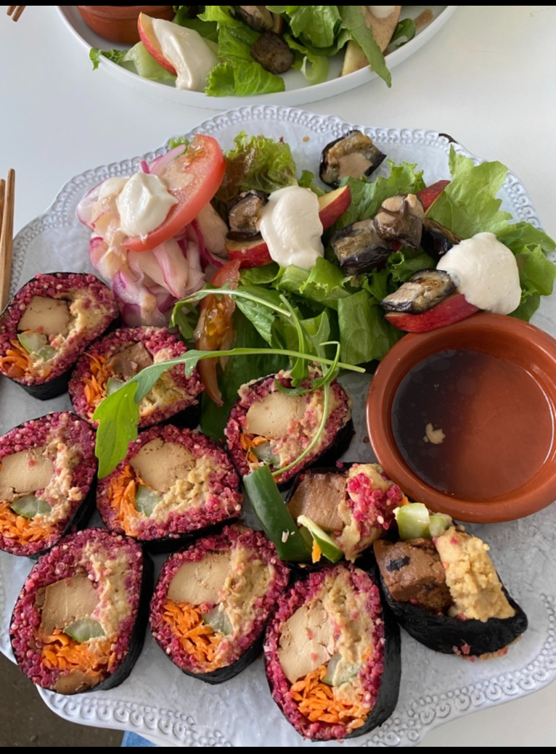 콩고기 치킨, 비건 켈리포니아롤 등등