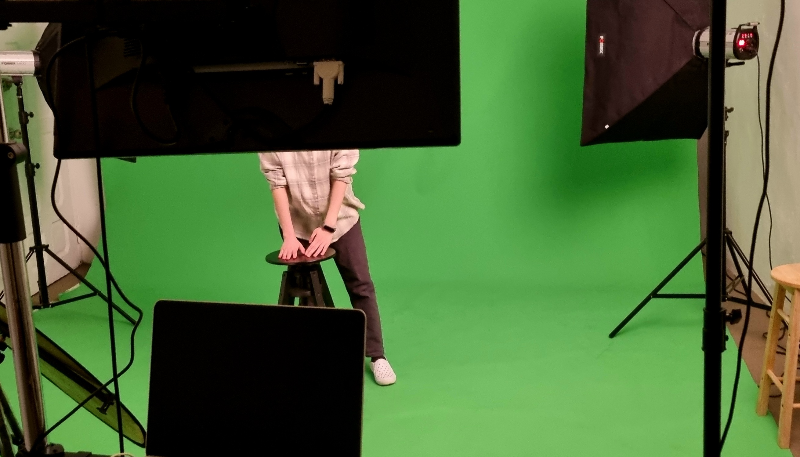합성을 전문으로 하는 사진관이라고 들었는데, 그래서인지 일반적인 사진관 배경과 달리 커다랗게 비치된 녹색 배경 있었음