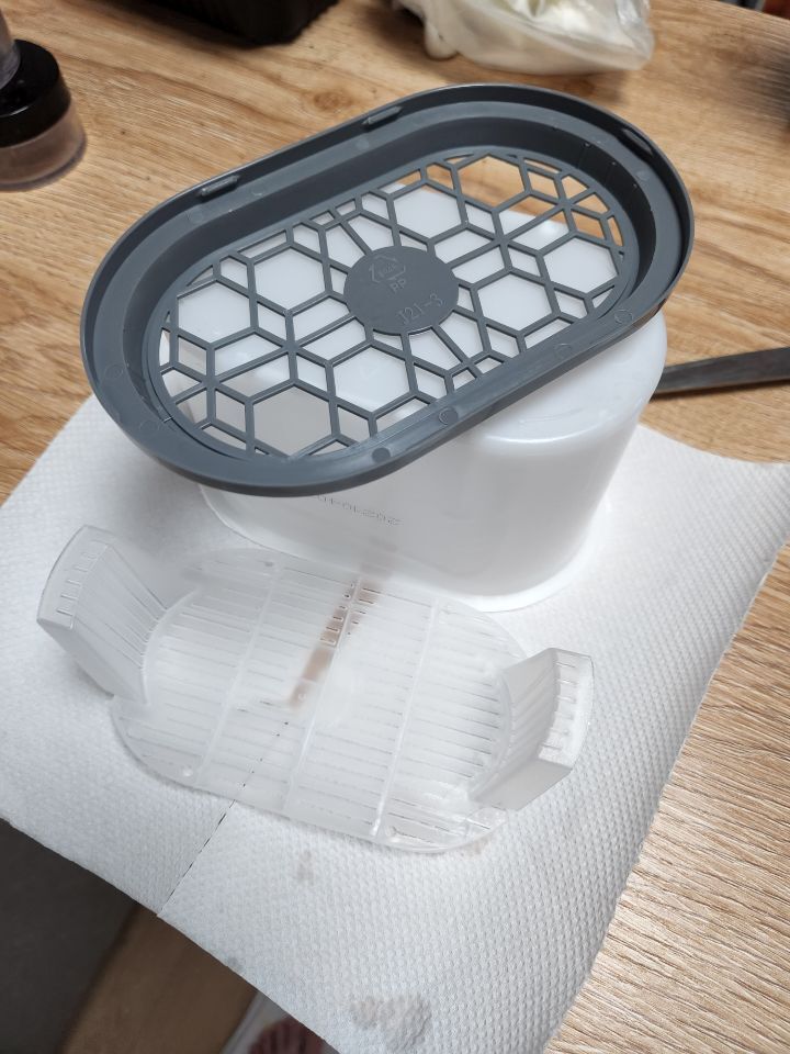 깨끗해진 뚜껑 + 본체 통 + 안에 받침대 통