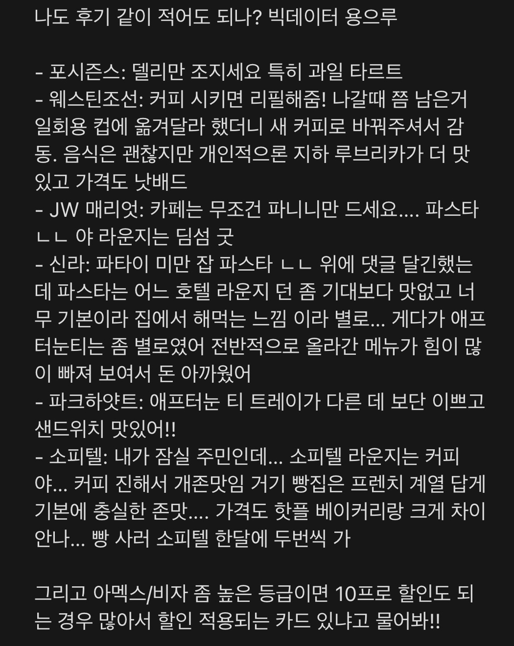 당일 워크인 가능하면서도 퀄리티 보장되는 호텔 라운지를 좋아하는 편 ㅋㅋ