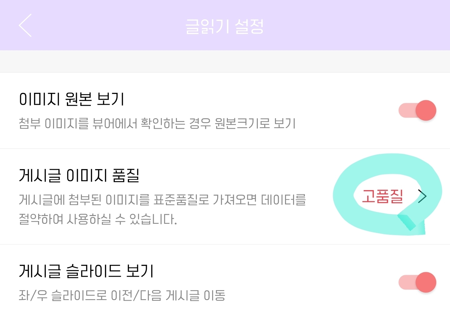 2. 글읽기 - 동그라미친 게시글 이미지 품질을 고품질로 바꿔주기
