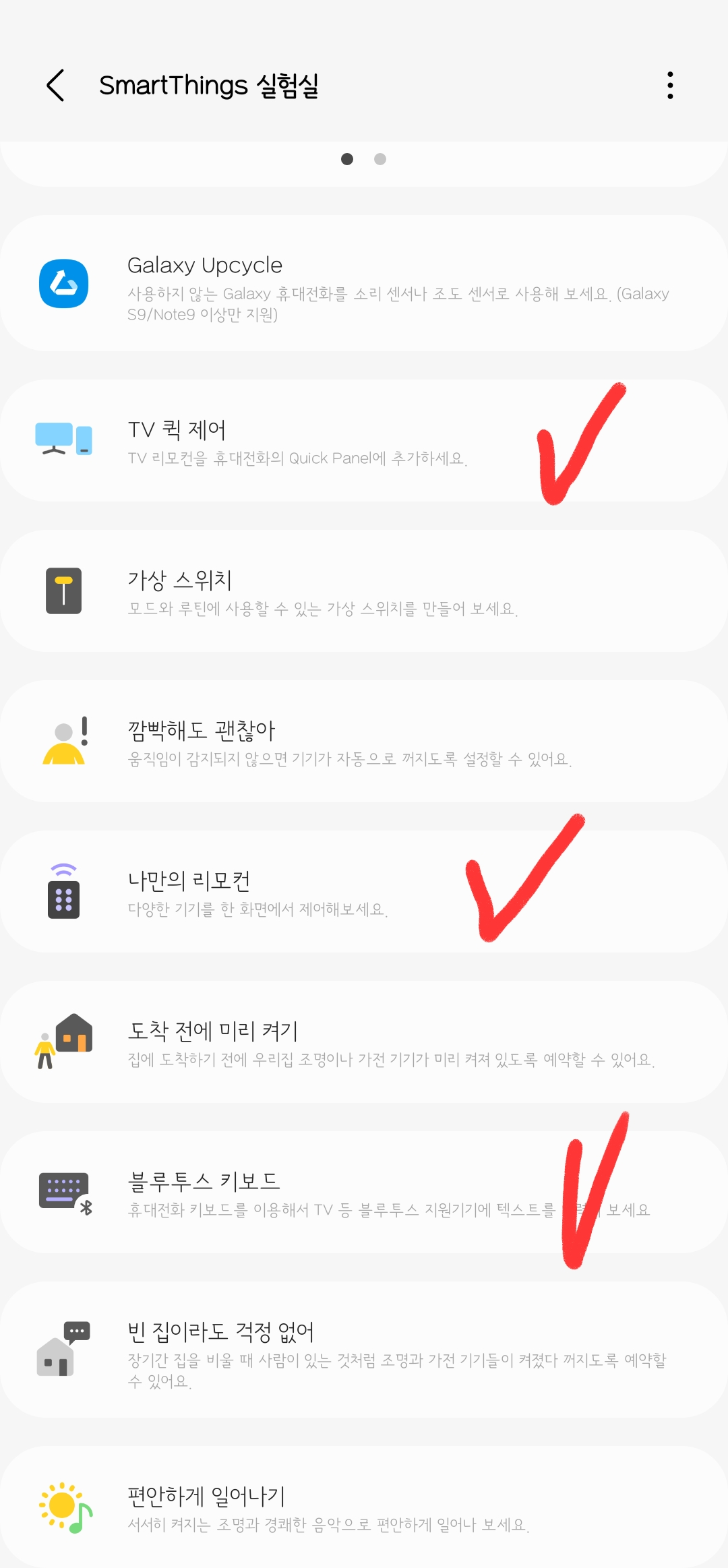 Smart Things 열기 맨밑 메뉴 三 실험실