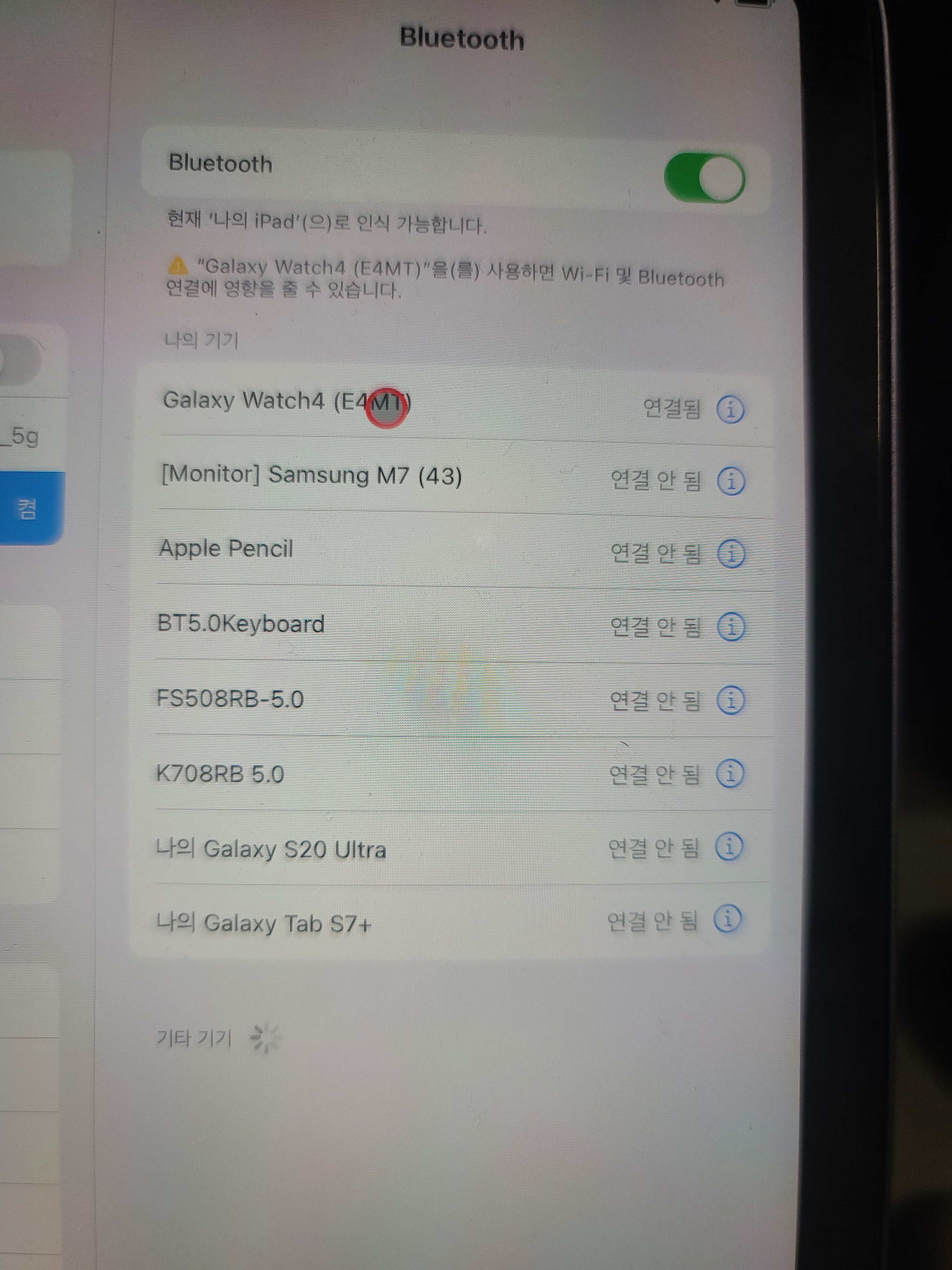 ※ 갤럭시탭 키보드 케이스로도 연동 가능. BUT! 이 기능을 켜면 모든 블루투스가 꺼짐.
