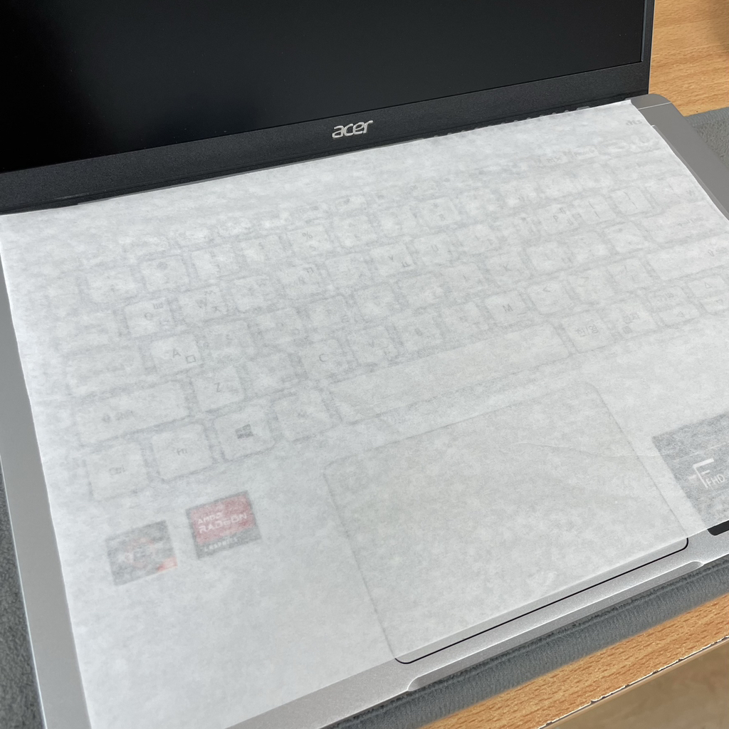 노트북 열었더니 화면보호? 종이가 하나 들어있었어