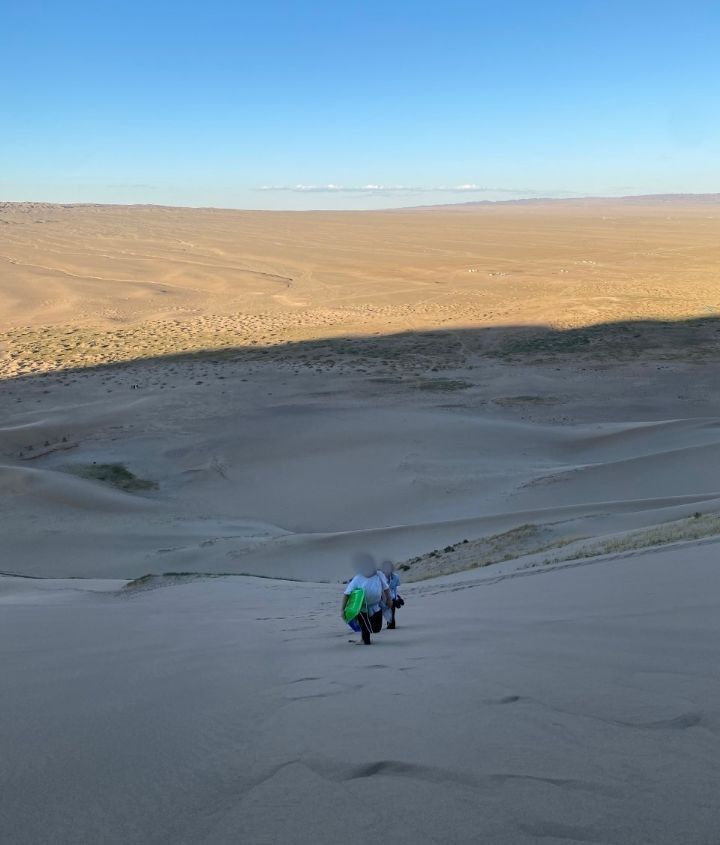 모래에 자꾸 발이 빠지니까 세 걸음에 한 걸음 올라가는 느낌? 서서 쉬면 쉬는 것 마저 힘듬. 근데 또 바람은 오지게 불어서 어쩔땐 모래가 오지게 때린다ㅠ 눈에 모래도 겁나 들어감ㅠㅠ