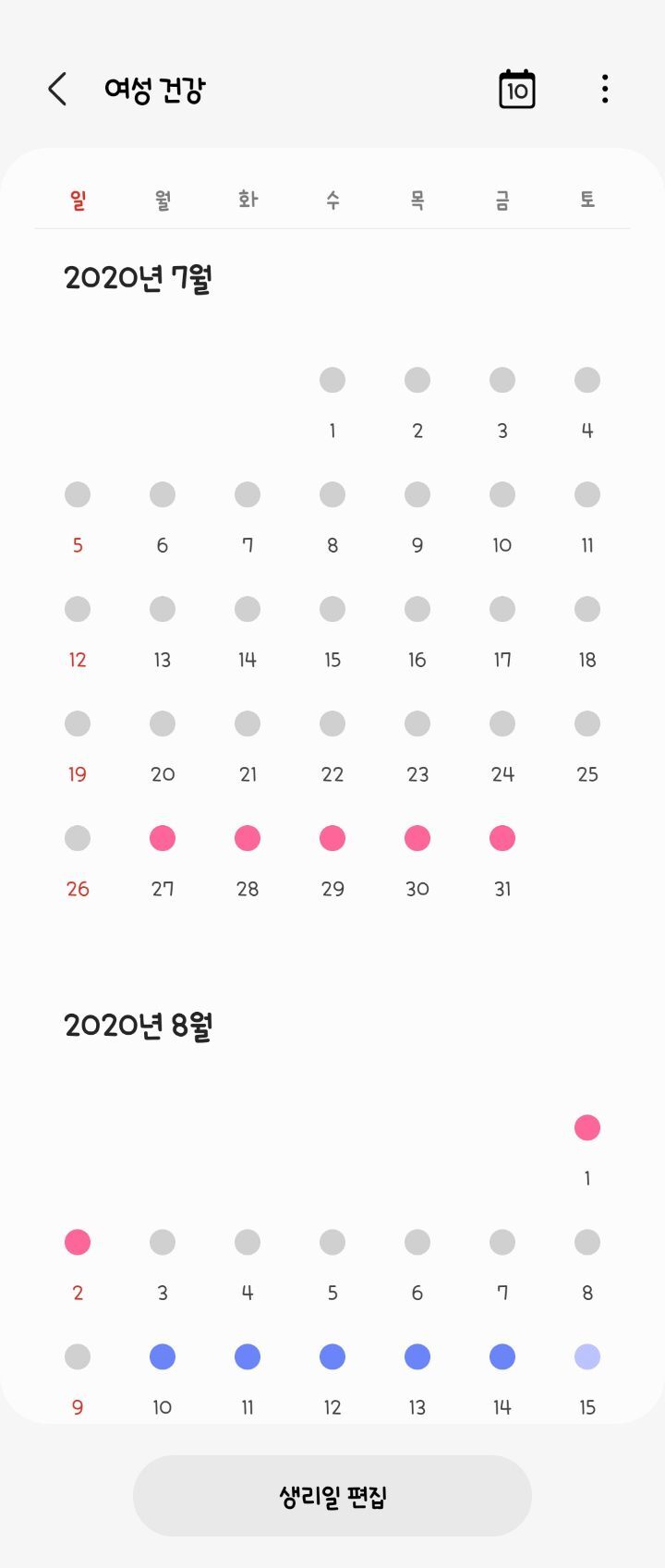 이 앱들은 주기를 잘 못 맞추기도 하고 여혐이 꾸준히 터져서 앱삭의 루트를 탔었고...유목민이 된 나에게 갤럭시가 삼성헬스 앱 업뎃을 하면서 이 기능으로 찾아와줬어
