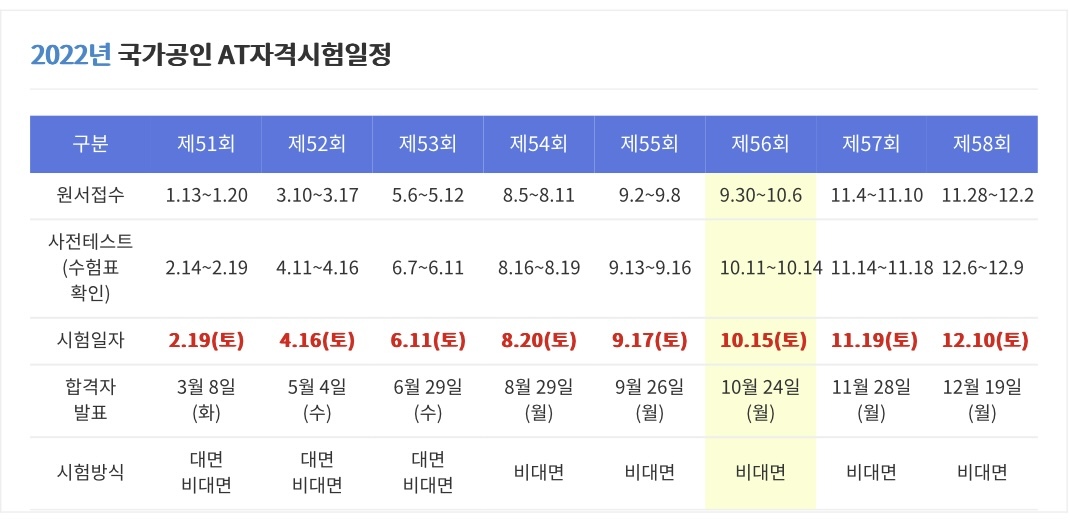 올해 기준으로 1년에 시험이 8번, 일정이 많은 편!