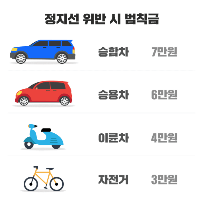 도로교통법 시행령 [별표8]에 따르면 정지선을 위반하여 횡단보도 보행자의 횡단을 방해하는 경우 범칙금이 부과되며, 승합자동차 7만원, 승용자동차 6만원, 이륜자동차 4만원, 자전거 3만원에 해당됩니다.